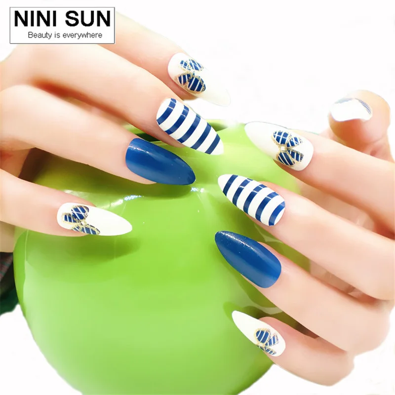 Us 217 24 Off2017 False Nails French Nep Nagels Fake Nails For Nail Art Design Nail Tips Faux Ongles Sky Blue Plastic Finger 24pcspack In False