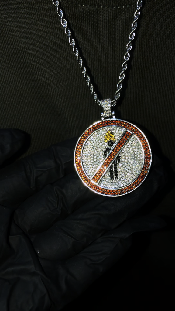 Details About Travis Scott No Bystanders Pendant Necklace Chain Fully Iced Out Astroworld