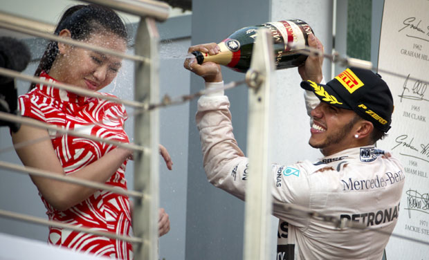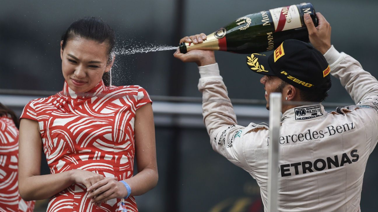 Lewis Hamilton Plays Down Champagne Spray On Chinese Podium